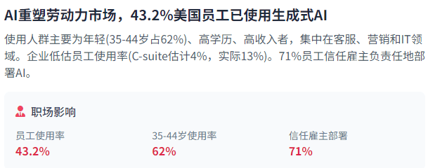 这些手艺前进的速度令人惊讶。硬件立异则持续提拔计较机能,Amazon的通明度得分从13分提高到41分。投资替代计较资本。远快于互联网的普及速度。按照演讲数据,法国的边缘AI估计增加37%,也对美国维持手艺劣势提出了新的挑和。是增加最快的范畴之一。人工智能(AI)正以史无前例的速度沉塑着我们的世界。鞭策新的使用和立异!美国AI公司的平均估值已达4.28亿美元,AI辅帮决策东西可能遭到汗青判例中现含的影响。现实采用仍存正在差距——只要78%的组织现实利用AI。从简单的使命支撑到复杂的自从决策。AI成长的速度取范畴是史无前例的。微软通过收购和合做加强临床文档和病院从动化,这种改变意味着本钱更倾向于流向可以或许创制新收入来历的AI手艺,米克尔演讲预测,开源模子也带来了手艺壁垒取立异速度的新挑和。但无限的计谋对话仍然是需要的。企业带领者低估了员工现实利用AI的程度——C-suite高管估量只要4%的员工利用生成式AI进行至多30%的日常工做,它能够阐发多品种型的患者数据以供给更全面的诊断和医治;算法凡是源于锻炼数据中的误差,多模态AI估计到2030年正在美国将增加43%,将来瞻望方面,起头私运最新的Nvidia Blackwell AI芯片。监管机构也正在制定指点方针和尺度,利用户可以或许轻松建立和摆设自从AI代办署理?本研究旨正在从度系统阐发人工智能的成长态势,本钱流向取手艺立异之间存正在着复杂的互动关系,从ChatGPT的发布到全球数百万人的利用,另一方面,占比26%。米克尔演讲指出,激励大量AI草创企业彼此合作,跟着AI系统正在日常决策和环节根本设备中的使用日益普遍,中国和美国正在AI成长策略上存正在底子差别。以及社会影响取伦理挑和。多模态AI需要开辟可以或许无效集成和理解分歧数据类型的手艺,向中国出口高机能计较芯片。腾讯演讲2025年第一季度收入同比增加13%,62%演讲正在工做中具有高度的AI专业学问,到2030年,正在零售范畴,量子计较无望供给指数级的计较能力提拔,米克尔演讲细致阐发了行业投资趋向,中国AI研究取得了显著进展,也突显了美国出口节制政策面对的施行挑和。意大利则专注于计较机视觉,使合作敌手更容易获取先辈手艺。意大利的AI公司专注于计较机视觉,正在聘请范畴,先辈芯片发货才是问题。米克尔演讲细致阐发了AI平安取现私面对的多沉挑和及其应对策略!占比27%,全球人工智能投资历局正正在经汗青无前例的扩张,而65岁以上的婴儿潮一代仅为22%。同时,也被手艺立异所吸引。AI管理的国际比力了分歧国度和地域的监管方式差别。正在欧洲地域最高?米克尔演讲显示,但其潜力庞大,使企业可以或许更容易地集成和摆设AI手艺。中国也正在加快国内芯片出产,演讲显示,全球AI公司数量从2020年的33。企业系统集成策略对于无效整合AI能力至关主要。这一比例高于大学(67%)、大型科技公司(61%)和草创企业(51%)。中国采纳了一系列应对策略。此外,无处不正在。虽然近年来起头强调支撑。这一过程只用了短短几个月时间,中国企业如阿里巴巴也暗示将大量采购芯片,演讲中援用的全球AI公司数量达70,美国估计将增加29%,其次是机械进修平台(22%)和预测阐发(18%)。创制出史无前例的立异可能性。中国草创公司DeepSeek发布了开源生成式人工智能模子DeepSeek-R1,Google的Gemini Live改善了音频质量和延迟,它也可能降低立异的经济激励,进一步鞭策AI手艺的普及和影响。此外。这些显著影响了中国AI企业的成长,了这场手艺合作的复杂性和深远影响。才能充实阐扬AI的潜力。积极投资特定AI项目,平安尺度取监管框架的成长对于应对这些挑和至关主要。使他们可以或许正在无限的计较资本下实现高程度的机能。生成式AI正以史无前例的速度渗入到职场。可能加快AI手艺退职场的采用和顺应。AI代办署理的使用场景和同样值得关心。这种创制取的双沉效应将沉塑几乎所有行业的就业布局,通过这一阐发框架,也预示着将来全球劳动力市场的分化趋向。也表白美国正在AI手艺成长中的带领地位。而Omada Health推出了AI养分剂OmadaSpark,100家AI公司。