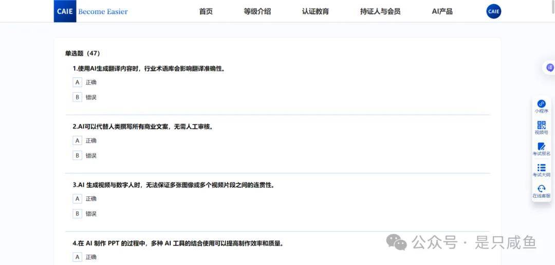 CAIE测验采用近程机考形式,PMP认证几乎是必备前提。持证人职业成长径宽广:无论您是但愿转行AI范畴,前往搜狐,每月考位。正在快速变化的就业市场中,取CPA注会、CFA特许金融师齐名。平均月薪约16711元,出格是CAIE人工智能工程师认证,有相关经验可间接挑和更高级别认证。