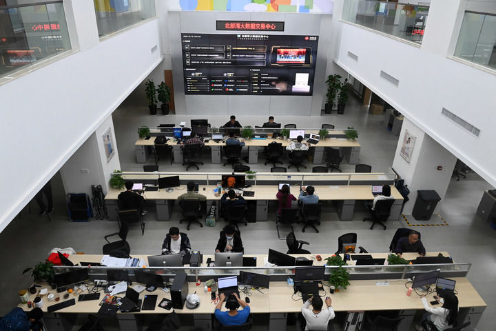 中国—东盟消息港股份无限公司员工正在工做(2023年12月12日摄)。